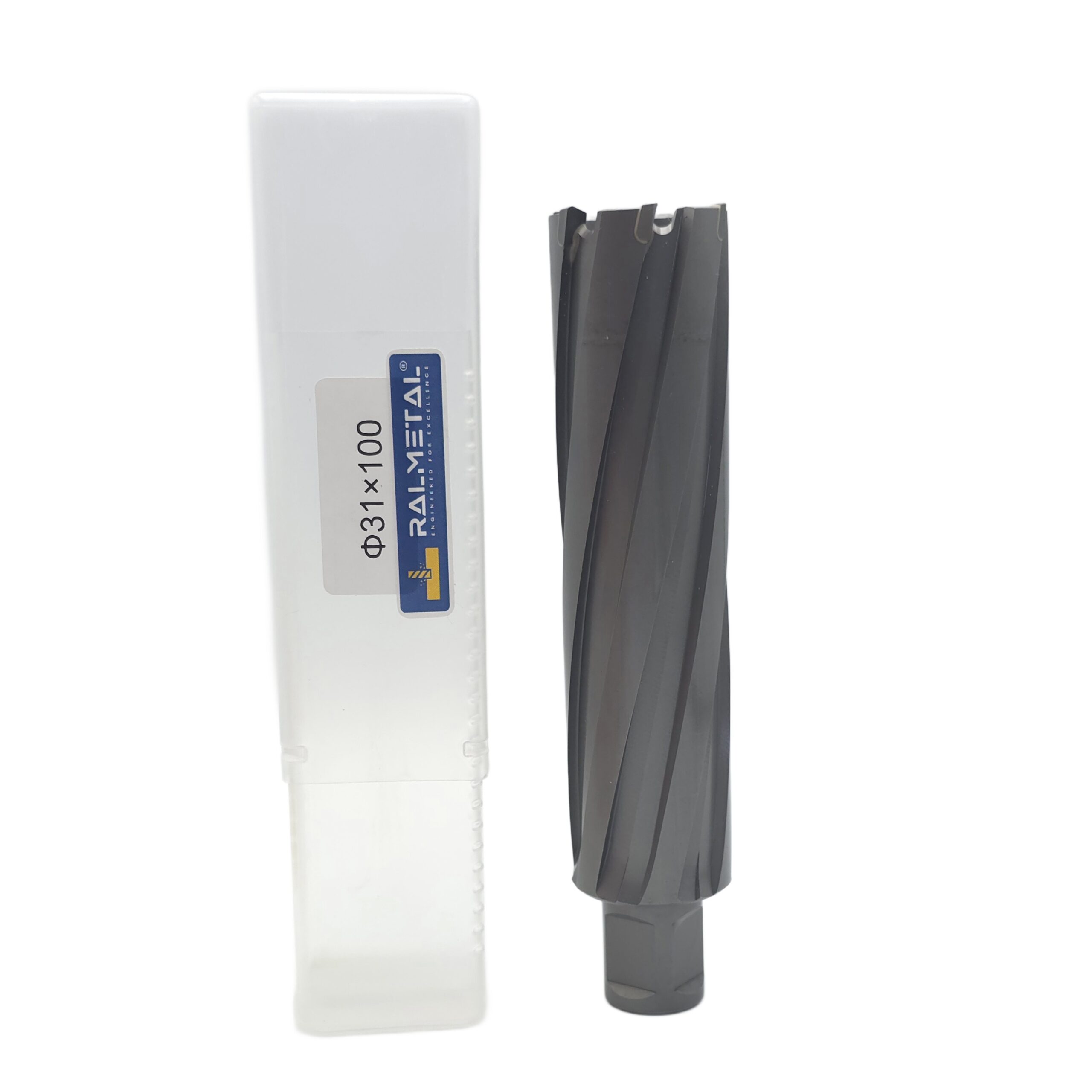 Wiertło Rurowe – Frez Trepanacyjny – Wiertło Koronowe Weldon 31 x 100 mm TC. Idealne do pobierania próbek, zgładów do badań laboratoryjnych.